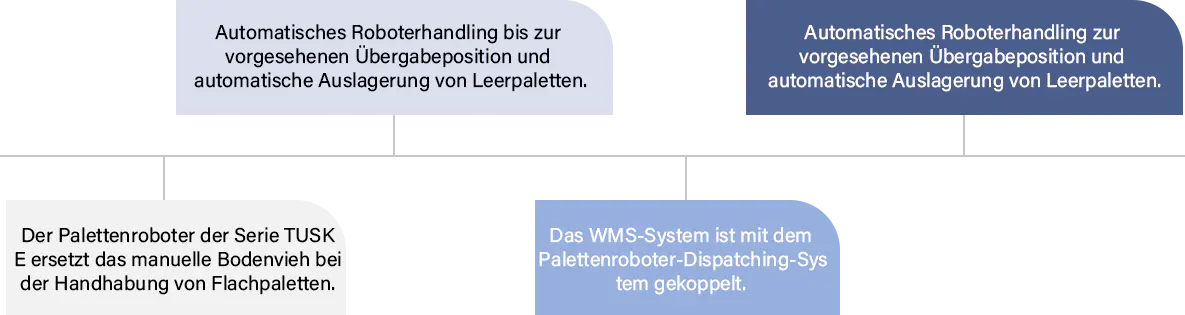 Als Hersteller von Palettenhandling-Robotern für die 3C-Industrie (Computer, Communication, Consumer Electronics) in China und als Fabrik für Palettenhandling-Roboter in diesem Industriebereich engagiert sich Tuskrobots dafür, intelligente Logistik in Smart Factories voranzutreiben und das Handling einfacher sowie effizienter zu gestalten. Das Unternehmen hat ein weltweit einzigartiges und innovatives intelligentes Roboterprodukt auf den Markt gebracht, das in hohem Maße mit international genormten Paletten für Transport- und Kommissionierprozesse kompatibel ist. Tuskrobots legt stets großen Wert auf Kundenservice und die Schaffung von Kundenmehrwert und setzt alles daran, die Projektabwicklung sowie die After-Sales-Servicekompetenz kontinuierlich zu verbessern. Wir handeln konsequent nach dem kundenorientierten Prinzip und entwickeln uns kontinuierlich auf Basis von Kundenfeedback weiter. Um unterschiedliche Einsatzszenarien und Kundenanforderungen optimal abzudecken, bietet Tuskrobots in der After-Sales-Phase eine Vielzahl von Serviceprodukten für seine Produkte und Systeme zur individuellen Anpassung oder Auswahl an. Wählen Sie den Serviceplan, der zu Ihnen passt – wir liefern Service von höchster Qualität.