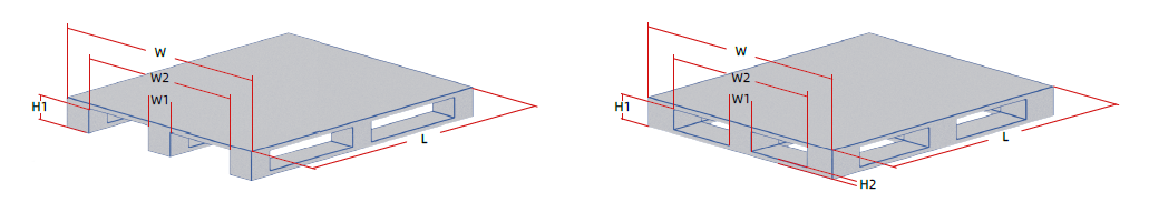 Palettenöffnungs-Höhe (mm) Offene Palette: H1 ≥ 95mm Geschlossene Palette: H1 ≥ 95mm, H2 ≤ 30mm